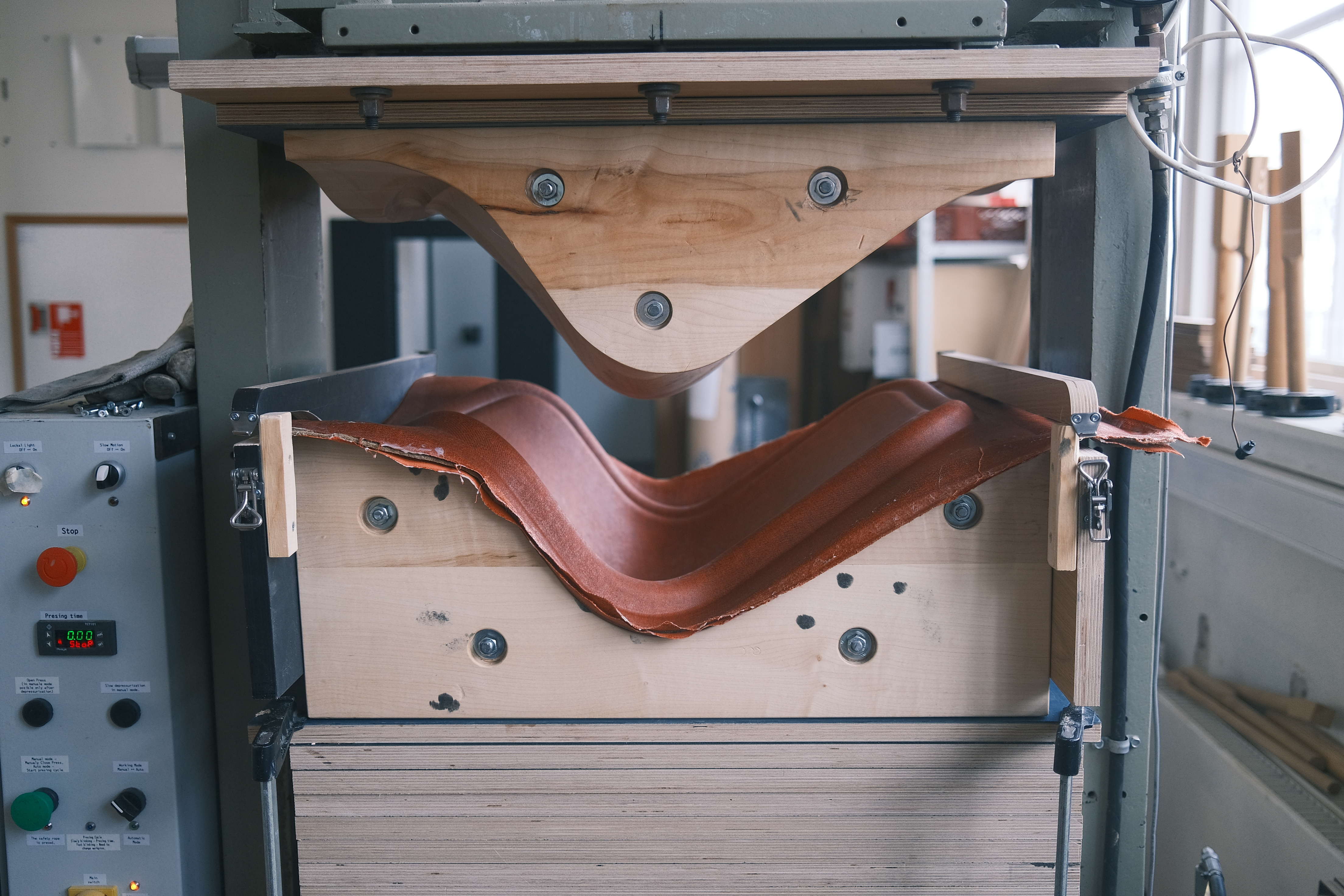 Bundle Studio exhibits at Material Matters with ongoing investigation into NeoLigno, a biobased adhesive developed by Stora Enso. The glue is an alternative to conventional formaldehyde based binders used in veneer furniture and wood composites. The exhibition centres on a lounge chair built from form pressed veneer shells assembled with lignin based glue. Alongside the chair, the exhibition unfolds as an open part of the process, including material samples, fragments and tests from development. For the studio, experimentation and implementation happen in parallel. By placing new materials directly into use through prototypes, the work explores how construction, material behaviour and industrial conditions shape future furniture production.