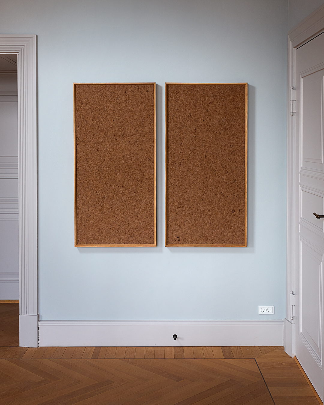 HUBBUB presents a material-driven exhibition exploring how 100% natural acoustic materials can shape interior spaces. Three architectural applications demonstrate how acoustic performance can be embedded into freestanding elements, wall systems and framed surfaces. A series of ESSENCE surfaces introduces plant-based compositions, where natural elements are pressed into the surface - becoming part of its texture. The exhibition invites a closer, sensory experience of breathable, acoustically open materials - bringing a quiet connection to nature into architecture.