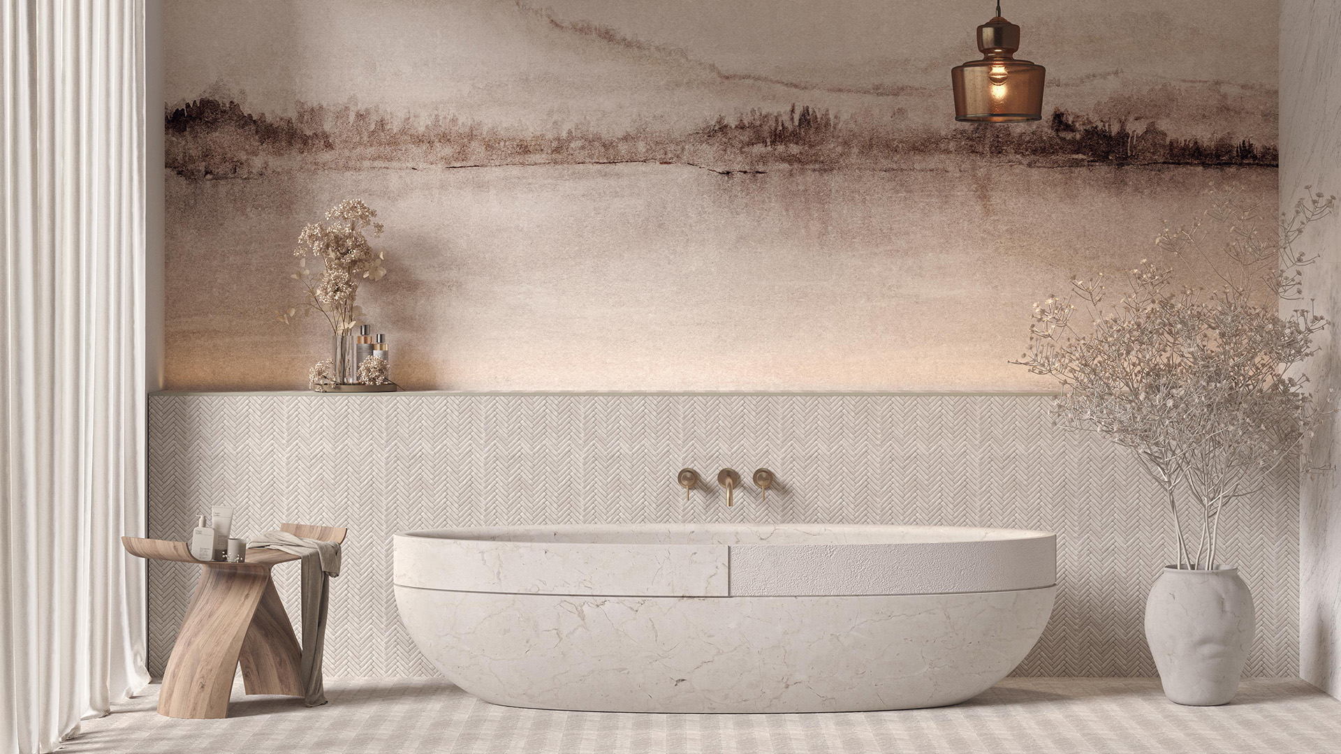 Porcelanosa Grupo presents Mosaic Odyssey - A Journey Through Materials, Craft and Cultures, an exhibition blending Spanish culture and innovation with Danish traditional craft. Located in the iconic Nils Stærk Gallery, the exhibition unites Porcelanosa Grupo’s advanced technologies and expertise in natural materials, with the tactile, handcrafted work of acclaimed Danish wood sculptor and furniture designer, Anne Brandhøj. Visitors are invited on a curated journey through three interconnected rooms, each dedicated to explore mosaics of marble, glass, ceramics and wood come together in modern interpretations. This collaboration is a dialogue between two design cultures and a creative exchange, celebrating shared commitment to high quality.
