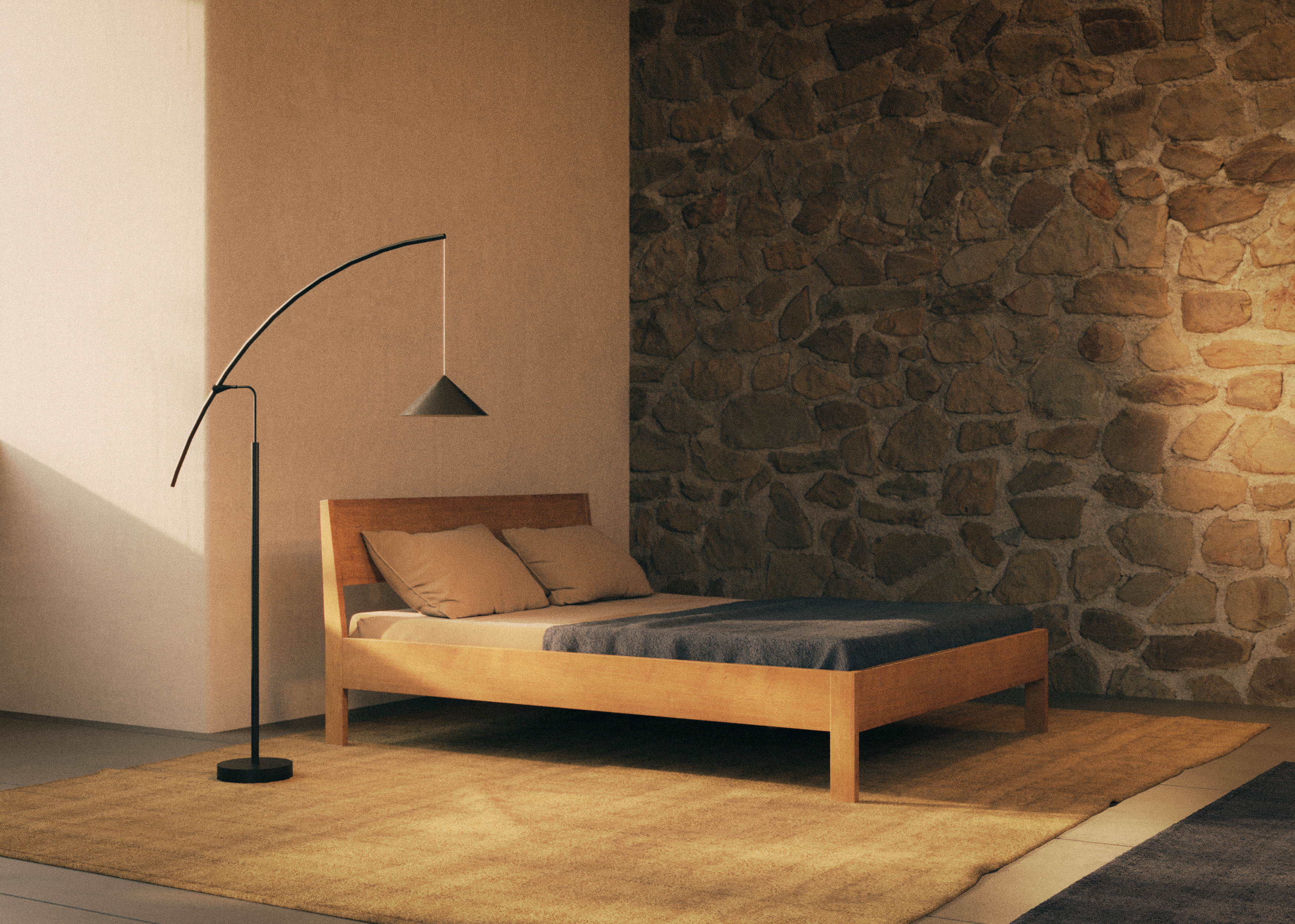 Rest is not only a function, but a spatial condition. The right space, the right material, the right quiet can change how the body settles. For 3daysofdesign, RYE brings this idea into a raw parking garage—a landscape of rest, unexpectedly still within the city. Handcrafted in Jutland from natural materials, each bed carries the quiet of where it comes from. The exhibition draws directly from this place of origin, translating the atmosphere of production into the space through material, image and sensory elements. Placed within an industrial setting, that honesty becomes the architecture of rest itself.