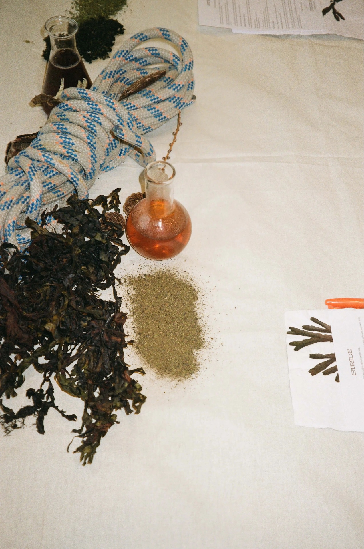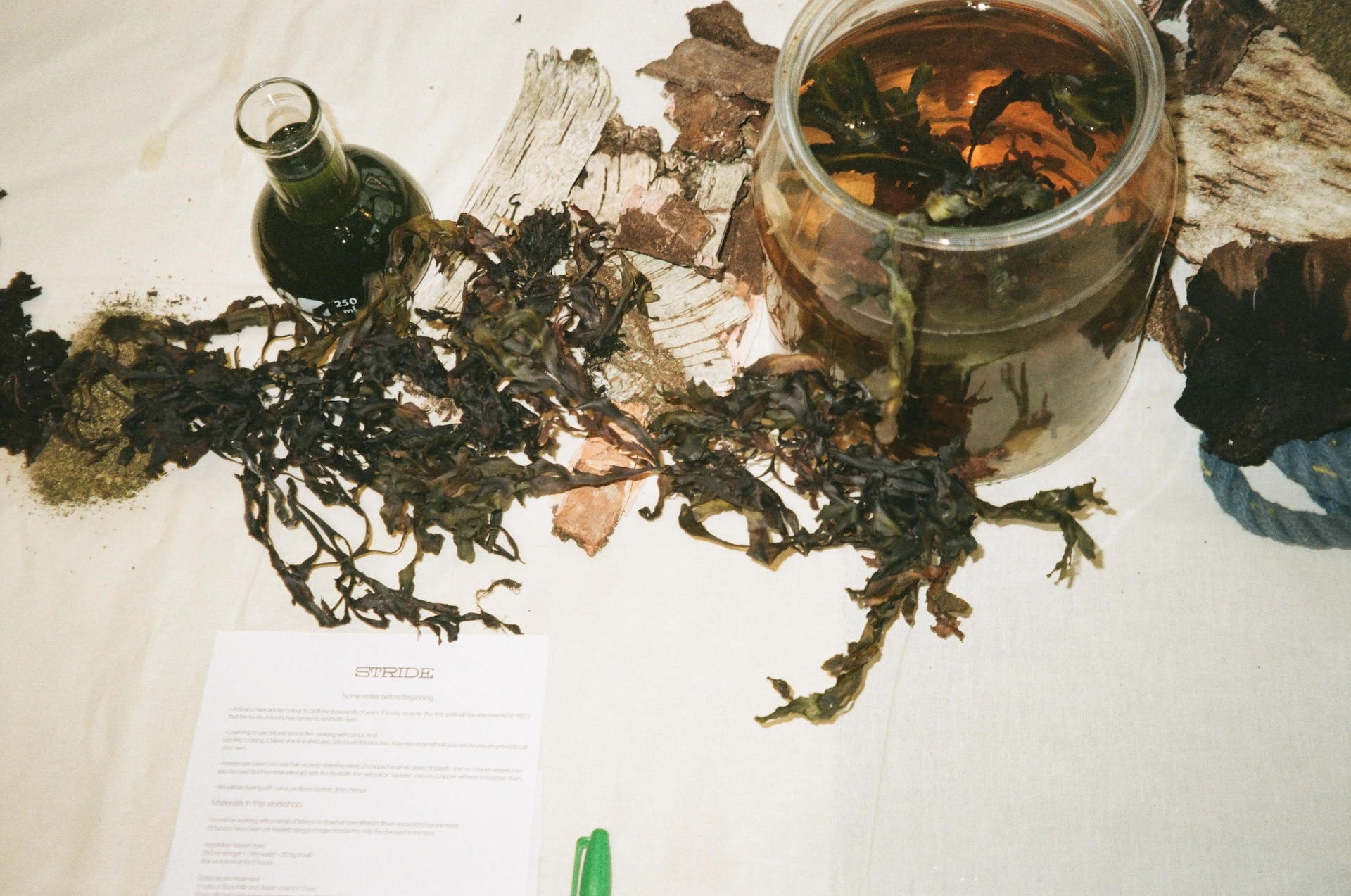 In collaboration with 25hours Hotels, STRIDE presents a material–led exploration of circularity within a hospitality context. The exhibition centres on upcycling linen and bedsheets from the hotel, transforming existing textiles through natural dyeing and experimental processes. By introducing sea–based materials such as seaweed, the project investigates how original tactile surfaces can be altered, creating new possibilities for interior applications. An evolving archive of material experiments is shown alongside live workshops, inviting hands–on engagement and dialogue, and positioning the hotel as a space for sustainable design exploration.